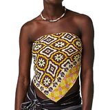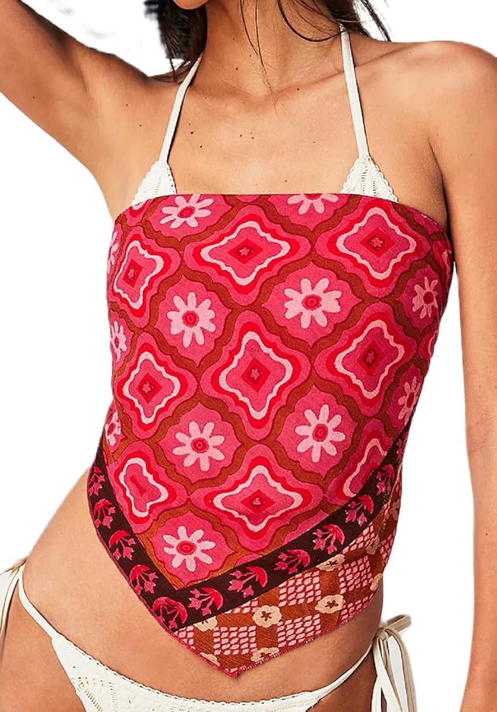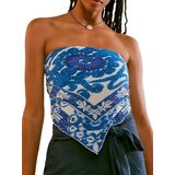 Women Boho Strapless Tube Top Asymmetrical Bandeau Tops Y2k Sleeveless Back Bustier Summer Vintage Crop Cami
