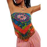 1 *Women Boho Strapless Tube Top Asymmetrical Bandeau Tops Y2k Sleeveless Back Bustier Summer Vintage Crop Cami