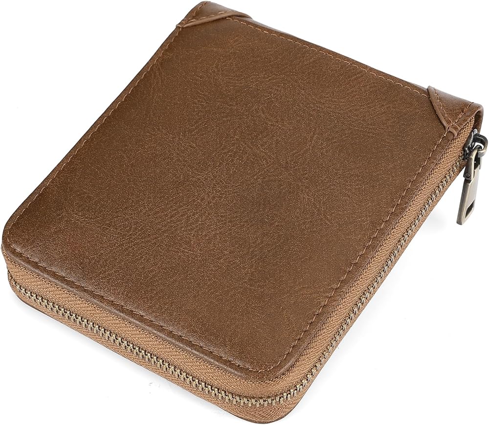 Large Capacity: Our zipper wallets for men feature 1 external card slot, 8 internal card slots, 1 bill compartment, 1 flip up ID/photo window, and 1 snap bottom change pocket. Measuring 4.72" x 4.13" x 0.98", the mens wallet bifold keeps all essentials neatly organized