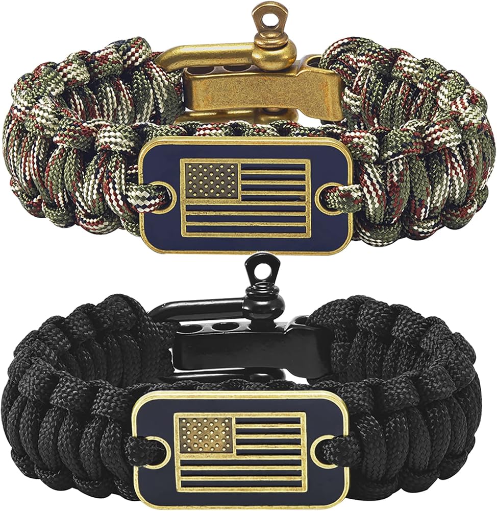 🧰 Wide range of uses: Military bracelets can be widely used for mountaineering, hiking traveling, and hiking emergency survival equipment. Once disassembled, it can be used to pitch tents, set traps, bundle luggage, etc., and even become your pet leash.