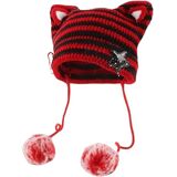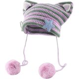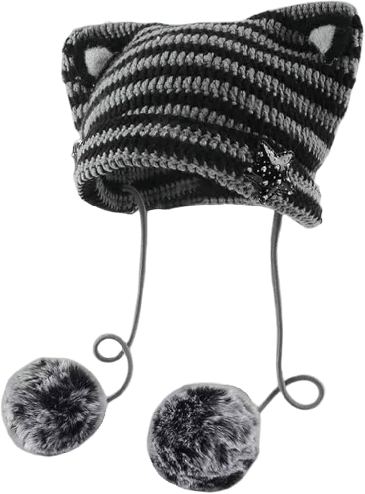 Package Includes: 1 x Y2K Cat Beanie Hat with Star Pins Pom Poms for Women