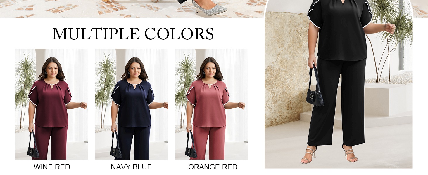 Stylish Elegance:Elevate your wardrobe with the AOVDE Plus Size Pant Suits for Women, specifically designed for the modern mother of the bride or special occasions. This sophisticated two-piece outfit combines a chic half sleeve top with tailored pants, perfect for any formal event.