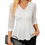 Styling & Care Notes: See-Through Styling Note – The white color features a lightweight, see-through design intended for layered styling. Pair with a crop cami, bralette, or nude underlayer for a modern, polished look. Light wrinkles may occur during shipping; steaming or light ironing is recommended.