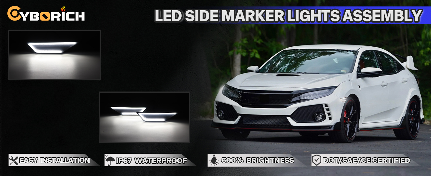𝐏𝐥𝐮𝐠 𝐚𝐧𝐝 𝐏𝐥𝐚𝐲: Designed for easy installation, CYBORICH sidemarker lights are a direct replacement for your OEM lights. Simply plug and play without any additional modifications or wiring needed, making the installation process quick and hassle-free. Your Honda Civic will get upgraded within 30 minutes.