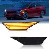 Upgrade LED Side Marker Lights for 2016-2021 Honda Civic 10th 10 Gen Sport Sedan Coupe Hatchback White Front Fender Bumper Turn Signal DRL Lamp Smoked Lens 2PCS