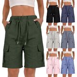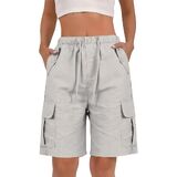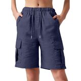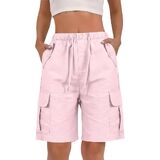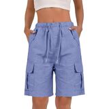 Bermuda Shorts for Women Knee Length Linen Shorts High Waisted Summer Casual Shorts with Pockets