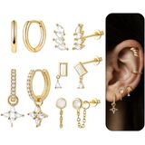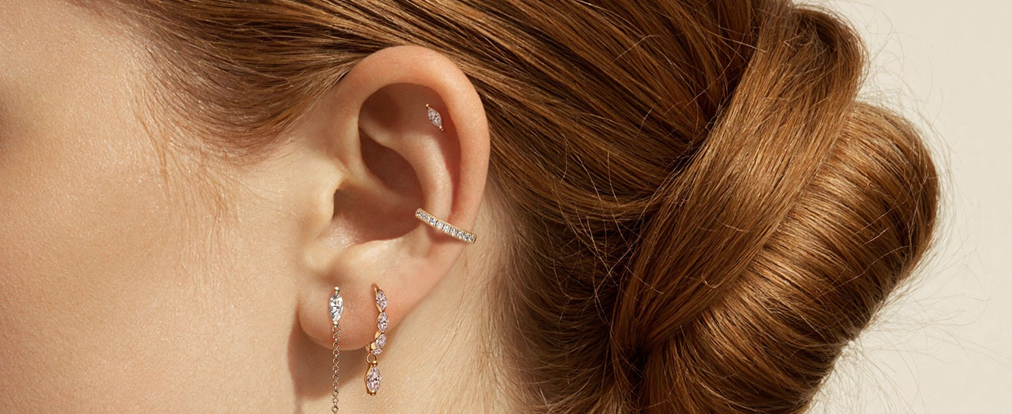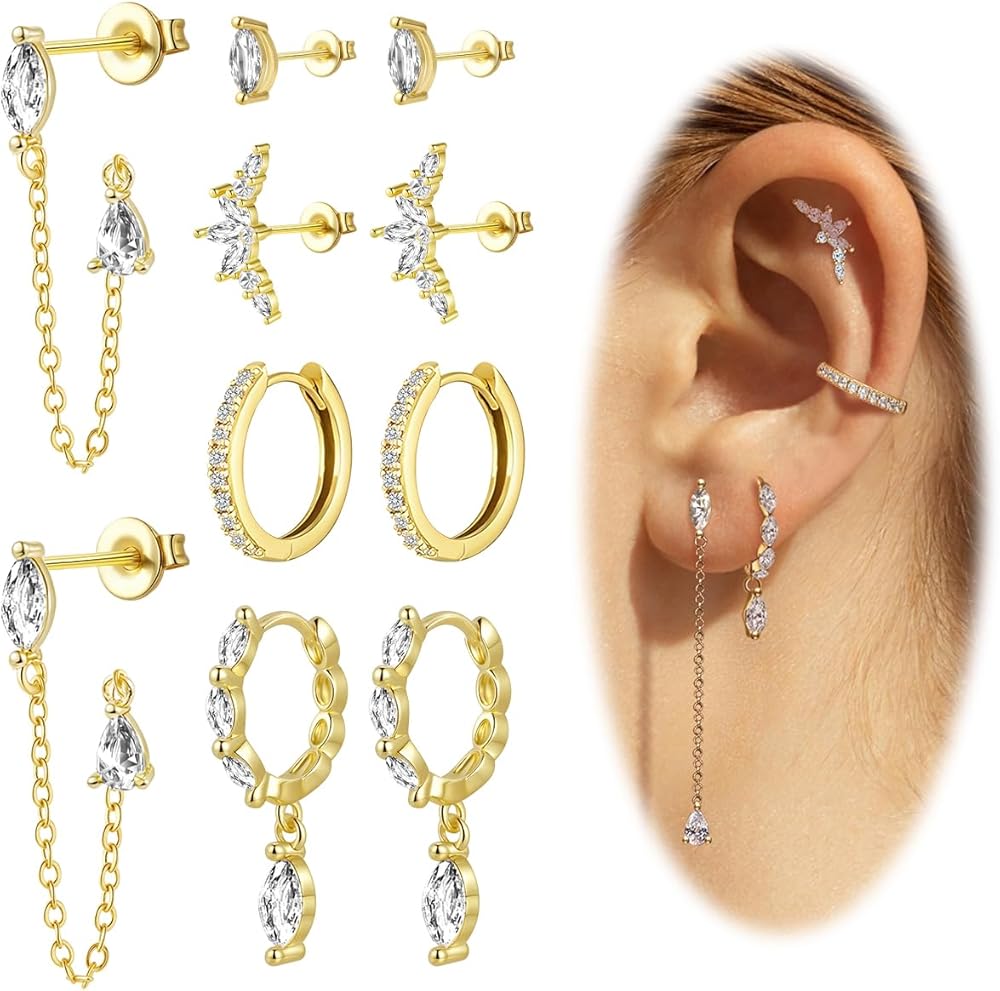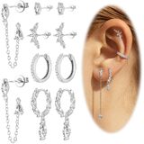 Versatile Chain Earrings & Earring Stacks:Includes chain earrings, stud earrings, hoop earrings, perfect for earlobes and Cartilage Earrings. Wear alone or create stylish earring stacks.