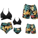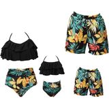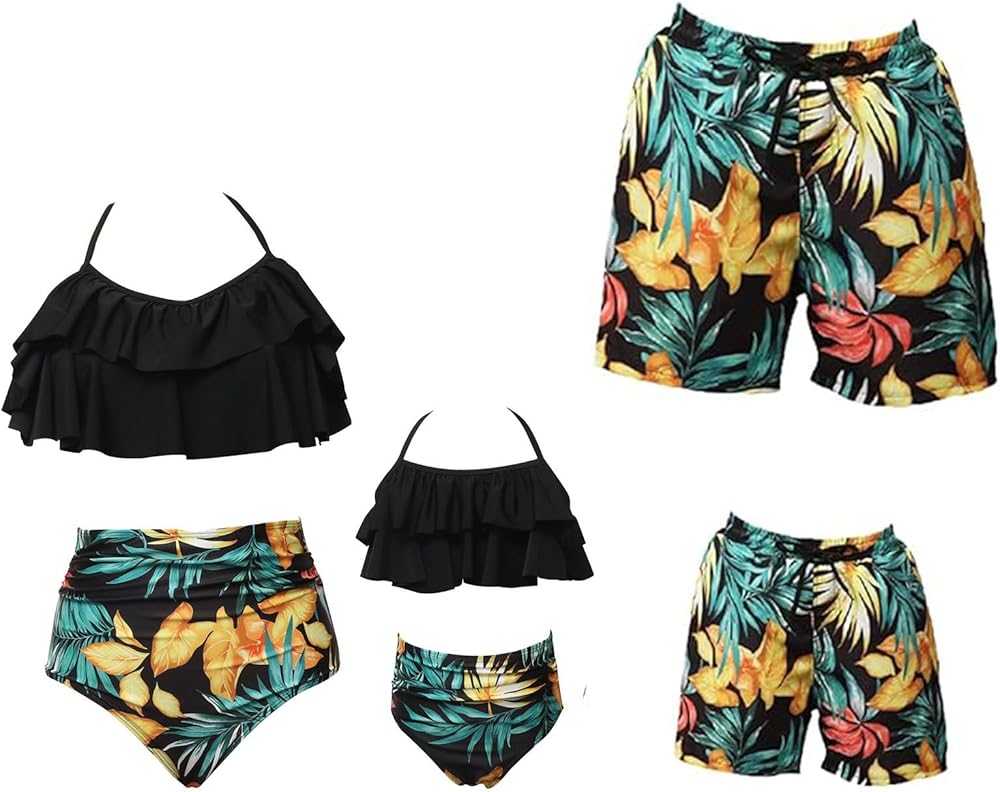 🏖️🏊🏝️️[Matching] - Family swimsuits bikini set featuring ruffle top and bottom for women and girls. Swim trunk for men and boys. Matching the same style tree leaves printing swimsuit with your kids, cutest family matching swimwear, best choice for swimming.