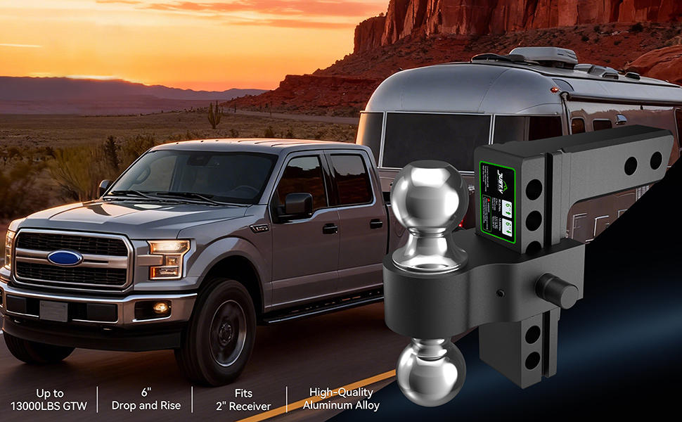 【6-Inch Adjustable Height for Universal Fit】6-inch drop/rise adjustment with 1-inch increments easily matches the height of your trailer, ensuring level towing and reducing wear on your vehicle. So the tow hitch can be easily adjustable for optimal towing with no need to ever change hitches for different vehicles.