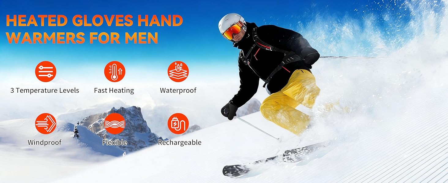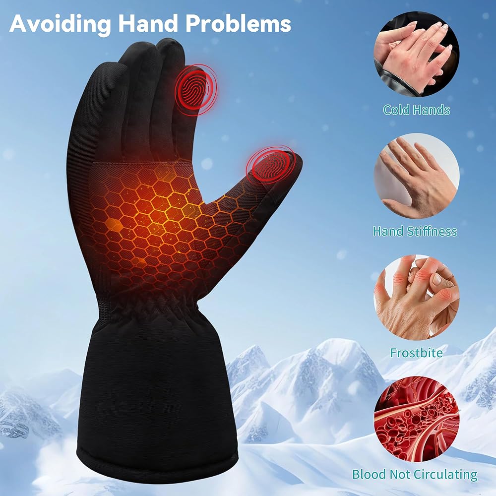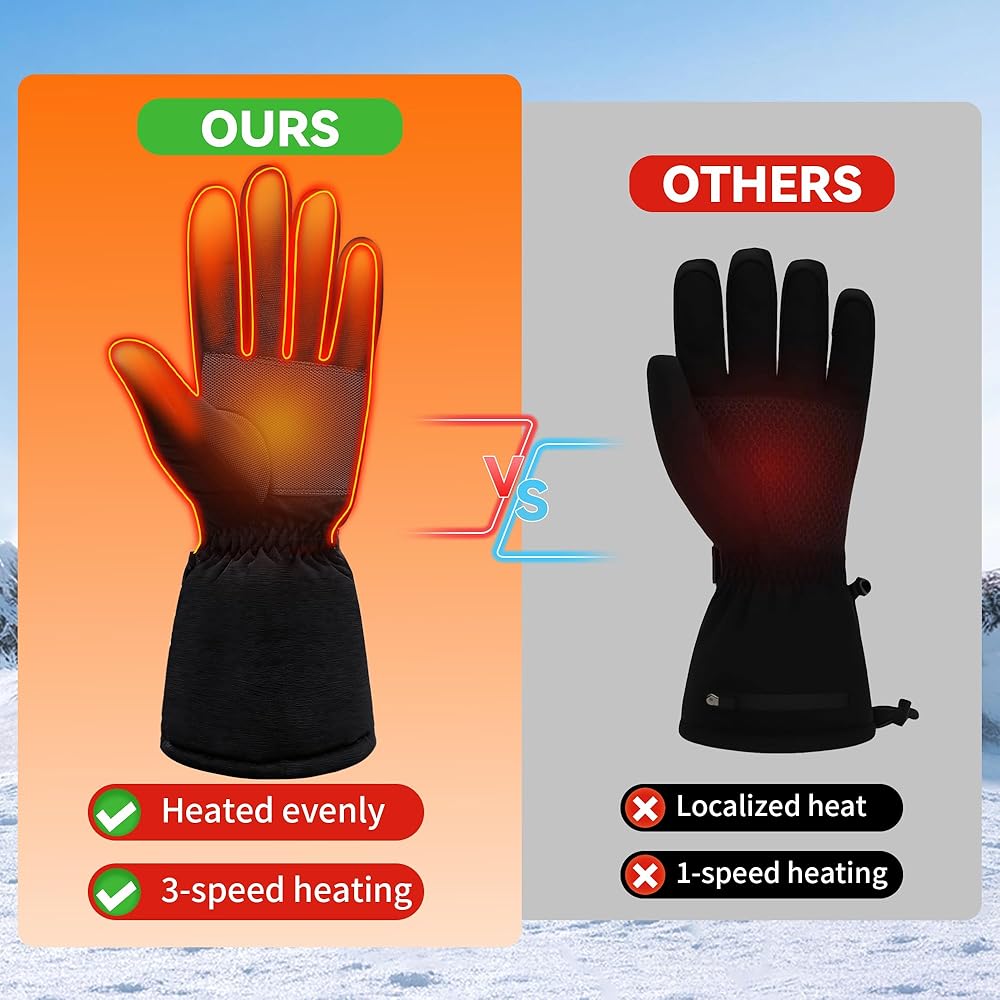 Heated Gloves for Men Women - Electric Hand Warmers with 3 Heating Levels & Fast Heating Technology, Waterproof Windproof Thermal Gloves for Skiing, Snowboarding, Cycling (Machine Washable)