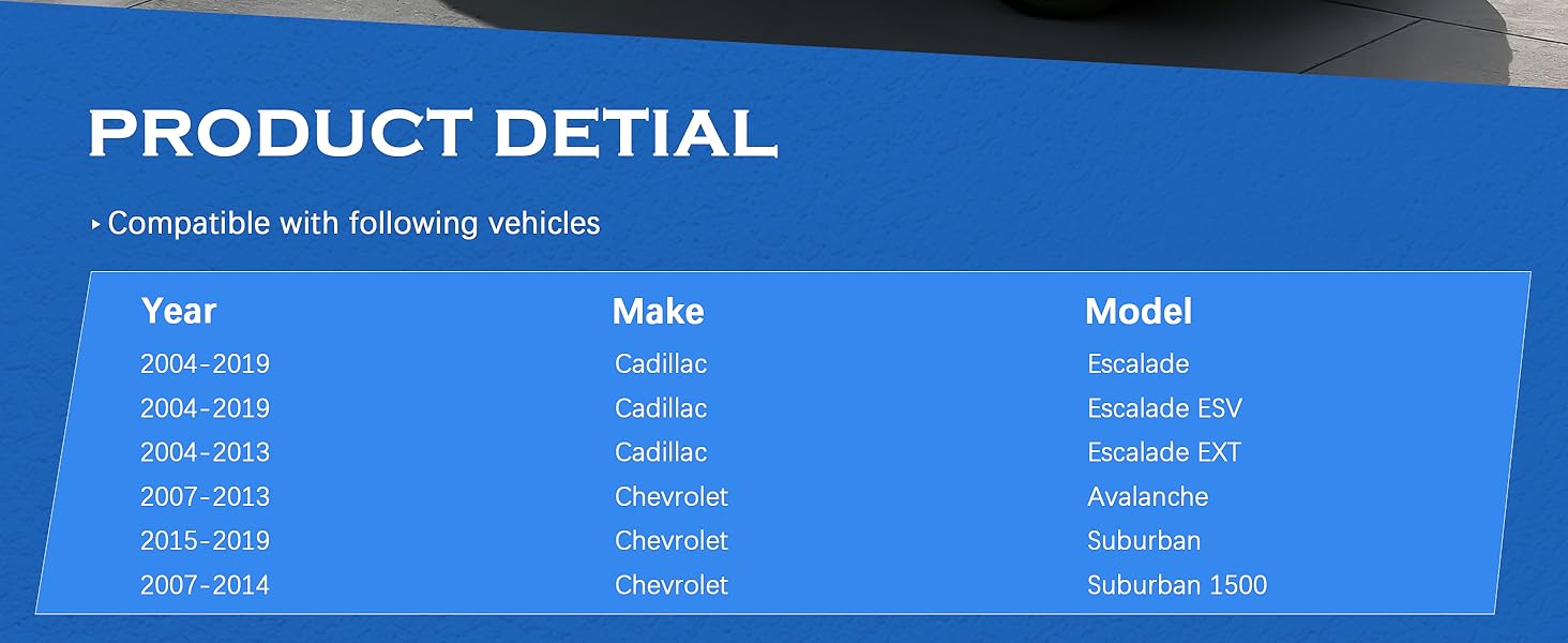✔Compatible with: Sway bar link kit fit for 2004-2019 Cadillac Escalade, 2004-2019 Cadillac Escalade ESV, 2004-2013 Cadillac Escalade EXT; Fit for 2007-2013 Chevrolet Avalanche, 2015-2019 Chevrolet Suburban, 2007-2014 Chevrolet Suburban 1500, 2004-2019 Chevrolet Tahoe; Fit for 2004-2019 GMC Yukon, 2015-2019 GMC Yukon XL, 2004-2014 GMC Yukon XL 1500.