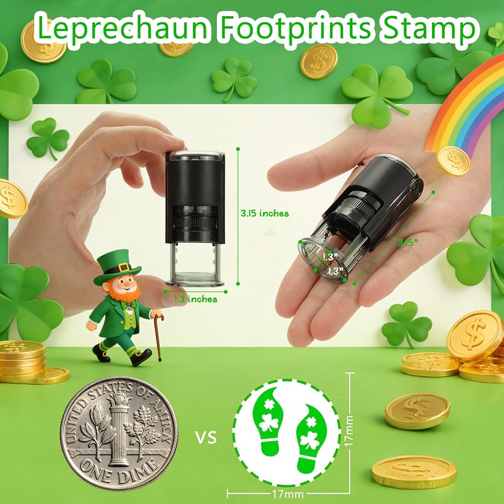 Small Self-Inking Leprechaun Footprints Stamp for Holiday Crafting St. Patrick's Day Decorations Party Supplies Irish Rubber St. Patrick's Stamp Leprechaun Trap Feet Stamp