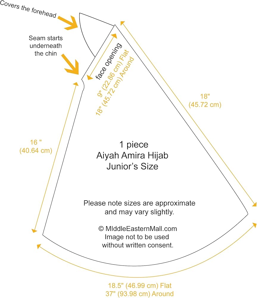The 1 piece Amira Hijab in lycra fabric drapes beautifully, is cool, stretchy, and light weight so it does not add bulk and you can hardly feel it on. The silky fabric is a luxurious 95% polyester/5% Spandex blend. This lovely hijab is accented with over five hundred 2 mm round aurora borealis rhinestones, which form a decorative design across the back of the hijab and a design across the forehead panel. The hijab is also embellished with over one hundred 4 mm square amber rhinestones. The 1-piece Al-Amira Hijab resembles the 2-piece version, but the 'headband' forehead section is sewn directly into a continuous seam along the hood (head and neck covering) opening for the face. Can be machine washed on a delicate cycle in lukewarm water but preferably hand wash to protect the rhinestones. Use a mild detergent that contains no chlorine bleach or fabric conditioner. Air dry, never dry lycra in a tumble dryer - the heat destroys the elastane in the fabric and could damage the rhinestones.