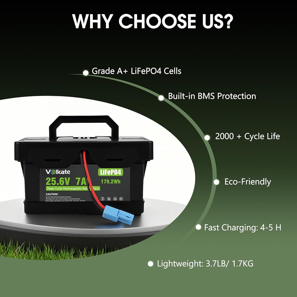High-Performance & Long Lifespan: Built with premium LiFePO4 technology, this 24V 7Ah battery delivers stable power and supports 2000+ deep cycles, ensuring years of reliable use for ride-on car, power wheels, and trolling motors