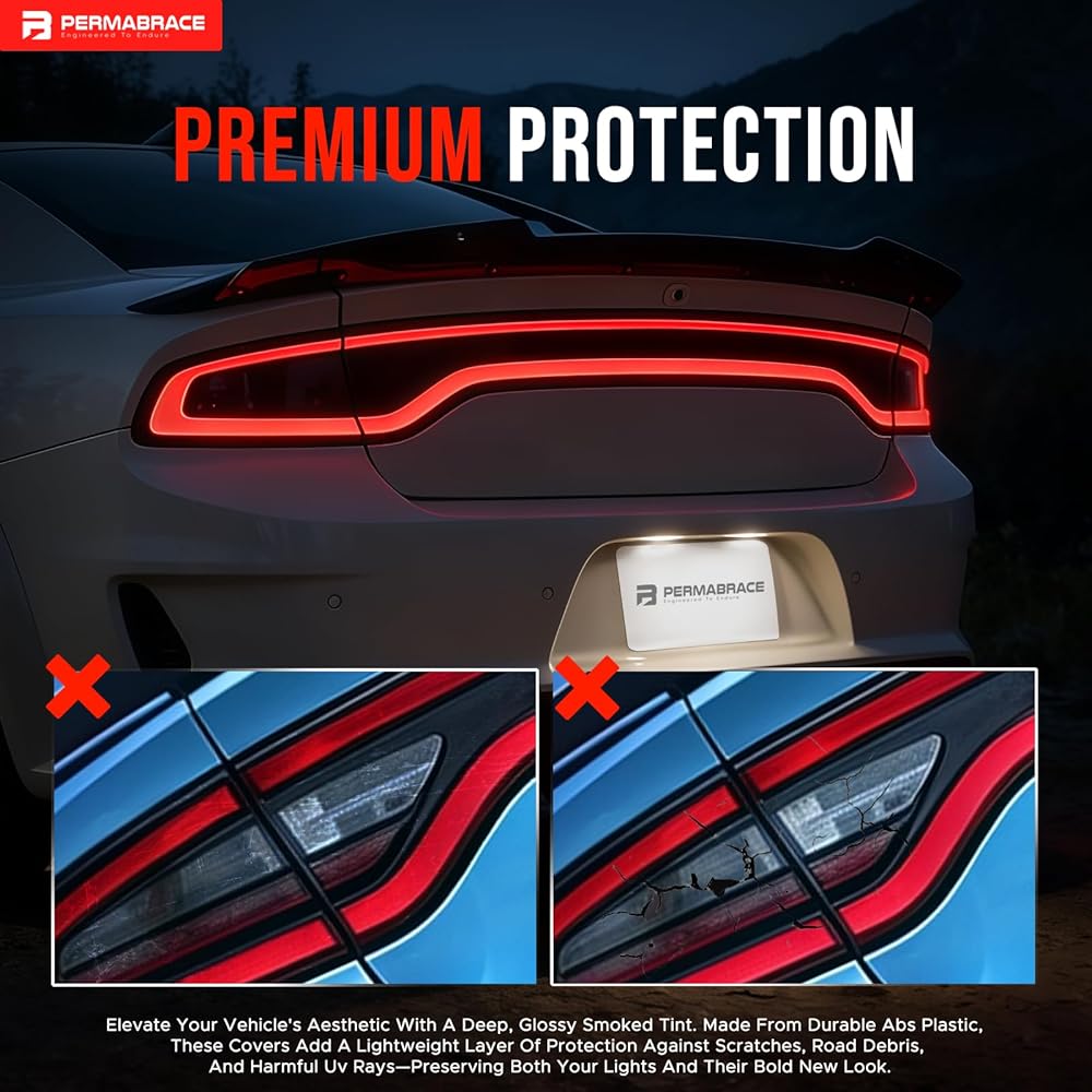 • 【Optimized Design for Safety & Style】Features a sporty, contoured design that enhances your Charger's aggressive look without sacrificing safety. The smoke tint is carefully calibrated to maintain excellent light transmission for turn signals and brake lights, ensuring visibility remains compliant and clear.