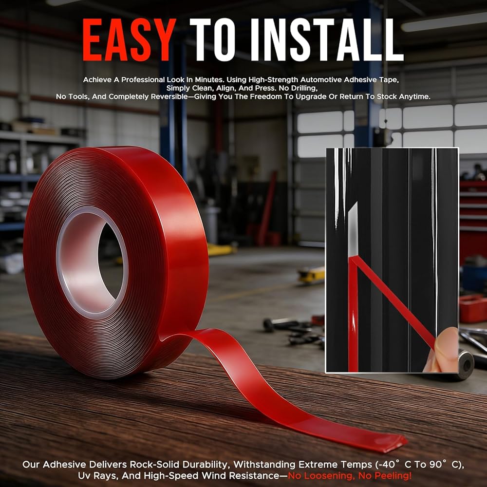 • 【Quick & Damage-Free Adhesive Installation】Achieve a professional, OEM-like look in minutes with a completely reversible installation. Simply clean the surface, peel the backing from the integrated automotive-grade adhesive tape, align, and press firmly. No tools, drilling, or permanent modification required.