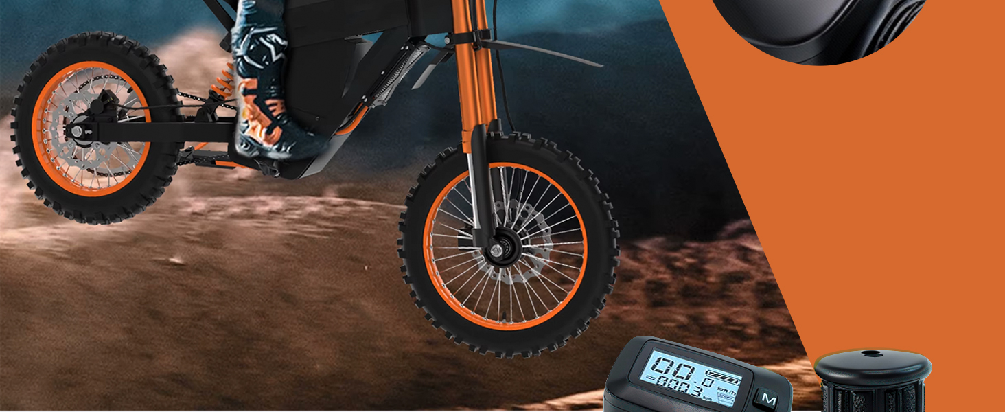 【Multi-Function M Button】The M key on the electric bicycle speedometer throttle primarily adjusts the three riding modes of the electric off-road motorcycle, making it suitable for both urban commuting and off-road scenarios.