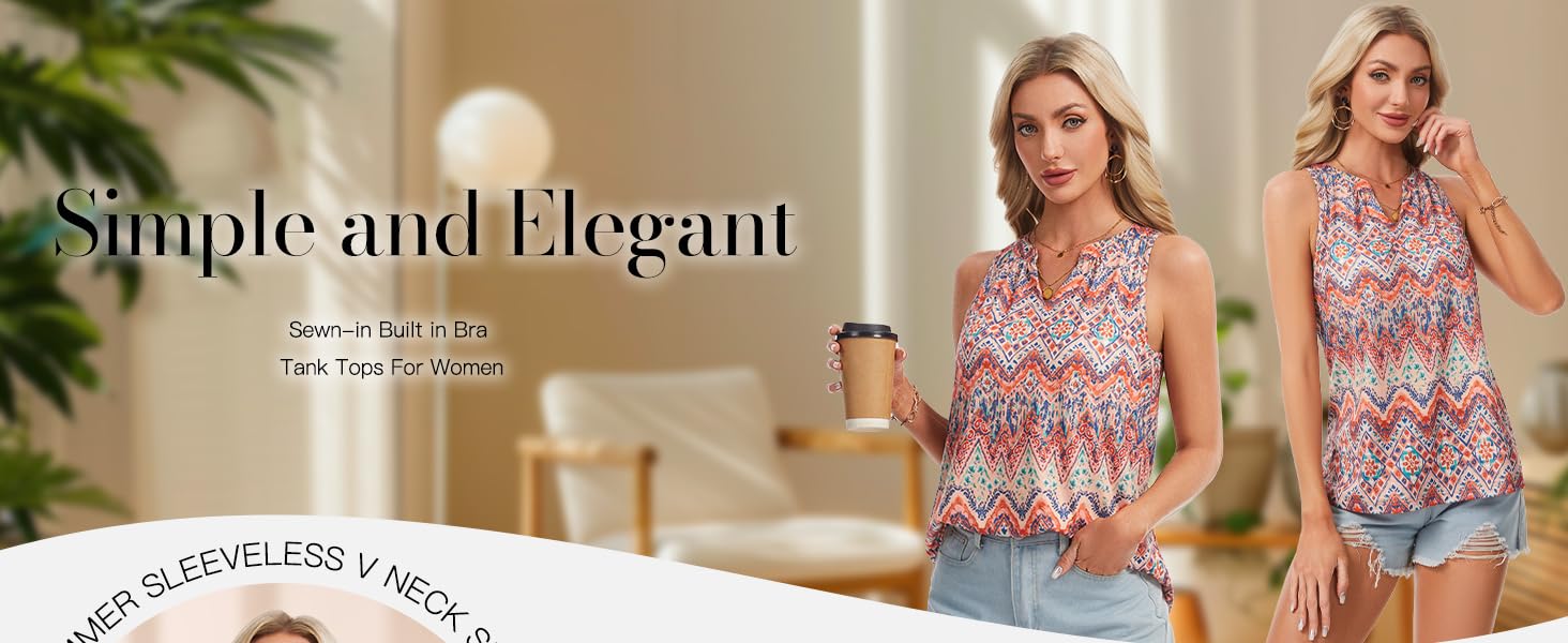 Soft & Comfortable Tank Top: Womens sleeveless tank tops with built in bra make of lightweight, breathable and stretchy fabric. Solid summer tops are made of 75%Polyester & 20%Viscose & 5% Spandex,Pattern tank tops are made of 94% Polyester & 6% Spandex.