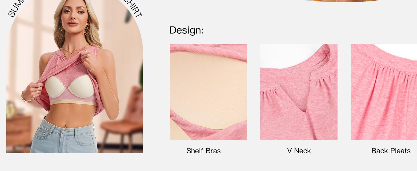 Built-in Bra Support: Non-removable paded bra tank tops for women that subtly shaping your bust while the double-layered structure avoids awkwardness. A reinforced elastic band beneath increases support for all-day confidence.