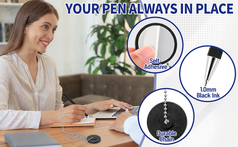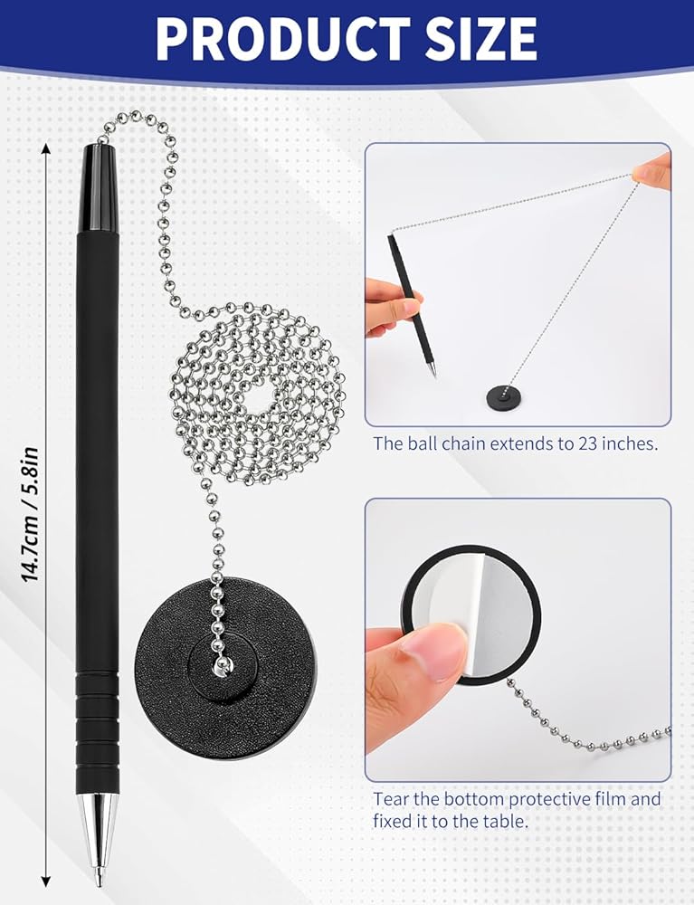 Considerate Design: The leash pen comes with a pen chain and a safety pen holder, which fix the base and chain to keep the pen in place, so there is no need to worry about losing it due to excessive use