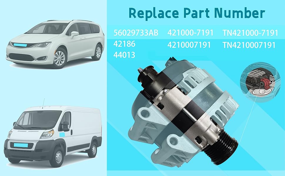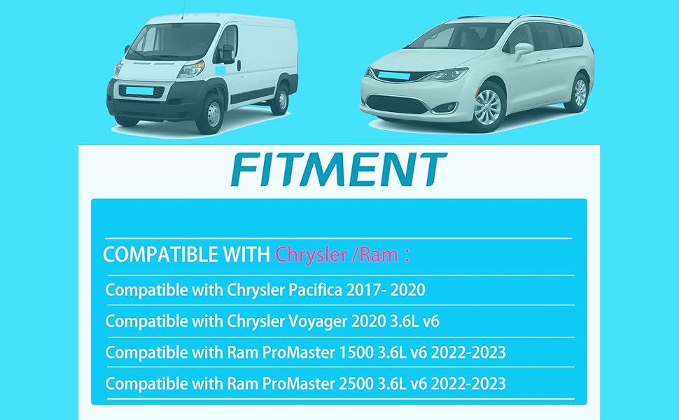 [Note]: The 2017-20 Pacifica is compatible with the 220-amp version (as it comes in both 180-amp and 220-amp variants). For the 2022-23 Ram ProMaster 1500/2500/3500, it is only compatible with models equipped with optional equipment.