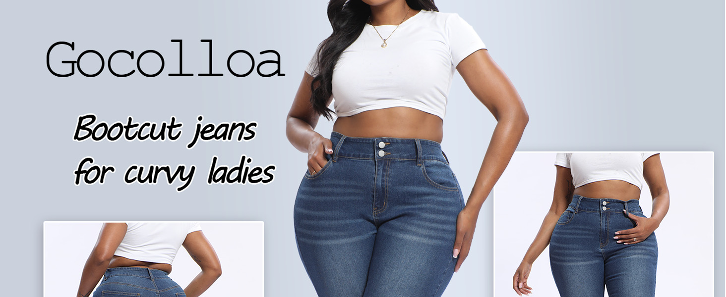 Stretch Boot Cut Jeans for Curvy Women: plus size jeans for women bootcut made of stretchy and soft denim material,they are stretch enough that hug your curves,with outstanding recovery to keep you looking amazing all day.
