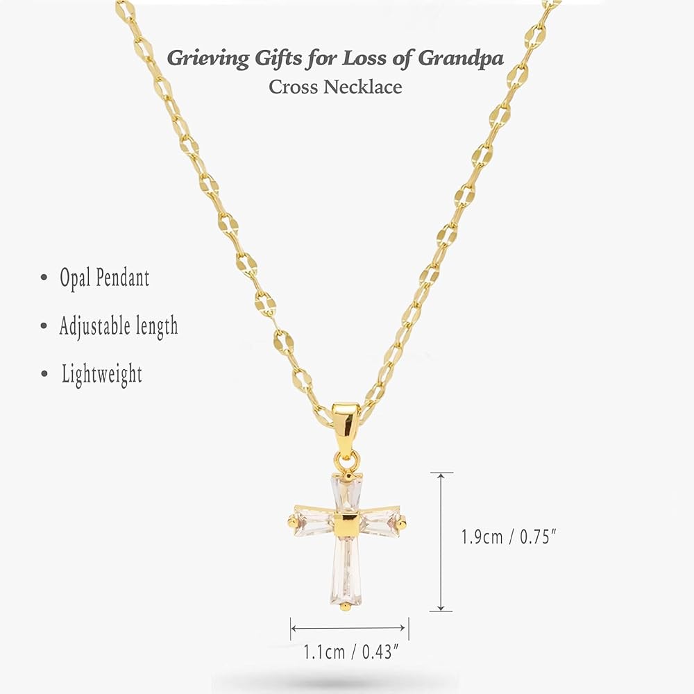 Meaningful Sympathy Gifts ~ This elegant Cross Memorial Necklace is a heartfelt tribute, measuring 17.7" length chain with a 1.9" extendable option, allowing the wearer to adjust it to their comfort. It's suitable for any occasion, making it an ideal gift for a friend dealing with the loss of her Grandpa