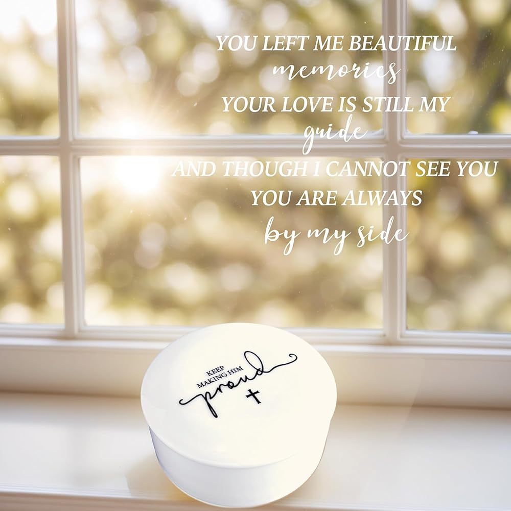 ZomefinKiu Grandpa Memorial Gifts, Keep Making Him Proud Sympathy Keepsake Box Ceramic with Cross Necklace, In Loving Memory of Grandpa, Condolence Remembrance Grieving Grandfather Passed Away Gifts