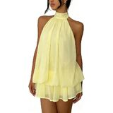 Step into effortless summer glamour with our Women's Chiffon Halter Backless Ruffle Mini Dress—your new go-to for every sunny or festive moment!