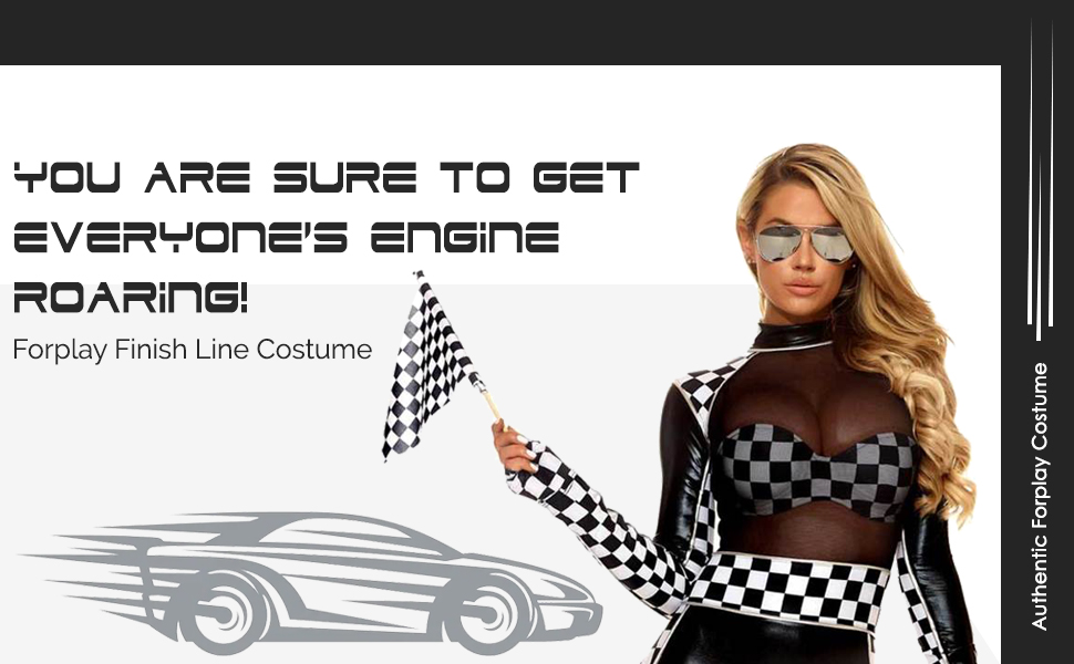 The Finish Line Car Racer Costume for Women is available in XS/S, S/M, M/L and L/XL