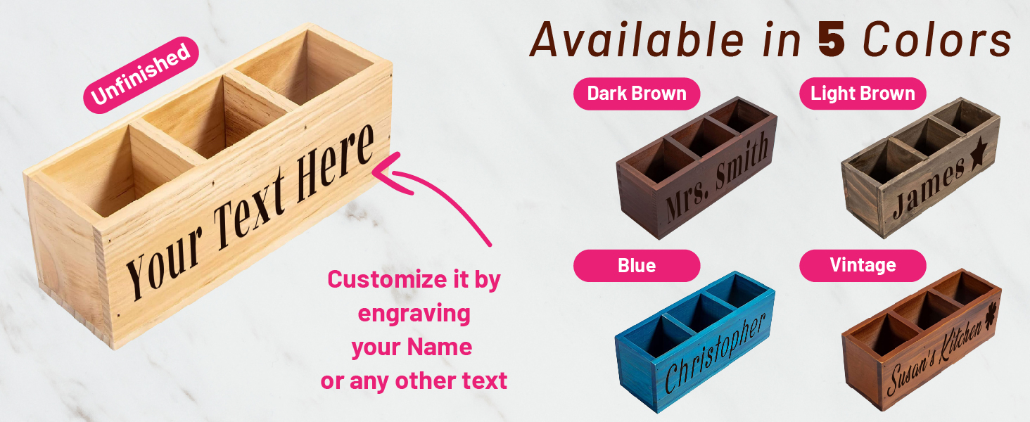 Personalized Name Wooden Recipe Box: Wooden Desk Organizer can be personalized with names, dates, or special messages, making them more unique and meaningful for you and your loved ones,