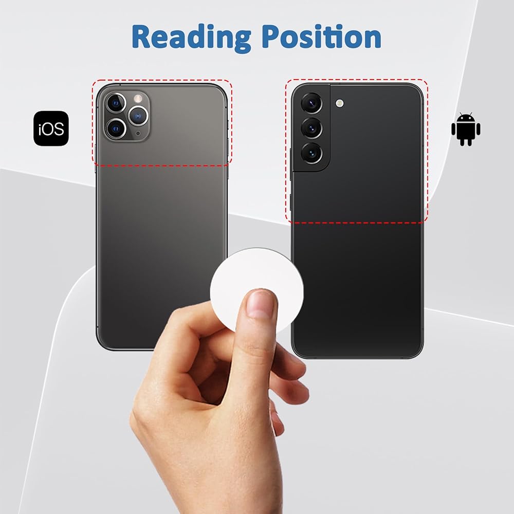 Self-Adhesive & Waterproof: NFC stickers have a strong adhesive backing, stick easily to phones, desks, dashboards, and walls. Waterproof PVC material ensures resistance to spills and environmental wear
