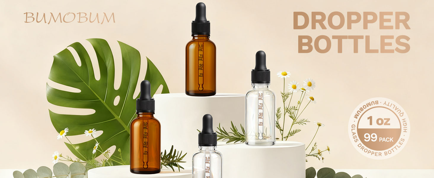 Bumobum 99 Pack, 1 oz Glass Dropper Bottle for Essential OIls, 30 ML Amber Empty Tincture Bottles with Dropper for Serum Hair Cuctile Body Oils Bulk for Storage