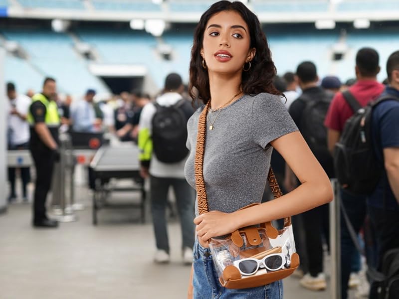 Stadium Approved Clear Bag for Effortless Entry: Specifically crafted to meet all venue clear bag policy requirements, this clear handbag is a game-changer for concerts, sports games, and festivals. As a clear stadium bag, it allows for stadium quick security checks, ensuring you breeze through entrances.