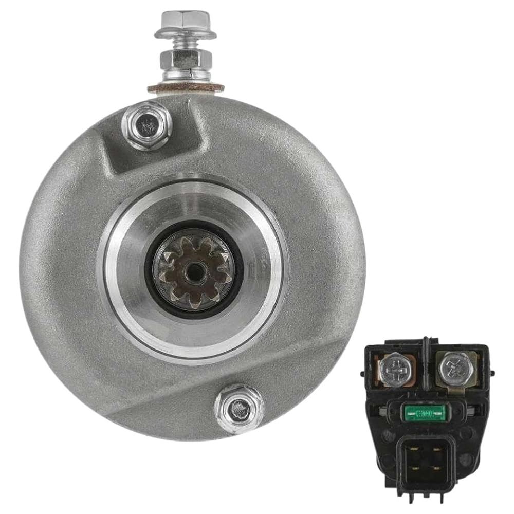 Starter Solenoid Relay Compatible With Lt-A450X Lta450X Kingquad 450 Axi 2007-2010 LT-A450XZ Kingquad 450 AXi SE 08-2009 Voltage: 12V Rotation: CW Teeth: 9 Starter Type: PMDD This starter solenoid relay is designed for compatibility with LT-A450X, LTA450X Kingquad 450 Axi models from 2007 to 2010, and the LT-A450XZ Kingquad 450 AXi SE model from 2008 to 2009.It serves as a direct replacement for part numbers 31100-11H00, SMU0421, 410-54110, 19631, and 19631N.Constructed to meet electrical system requirements, the 12V solenoid operates with clockwise rotation and features a 9-tooth PMDD starter type, supporting consistent engine engagement.The design allows for straightforward installation without the need for modifications, making it suitable for use during routine maintenance or component replacement.Built to perform under conditions, the solenoid is rated to function reliably at operating temperatures up to 105℃.Its construction supports stable performance in varied environments, contributing to dependable starting for the ATV.