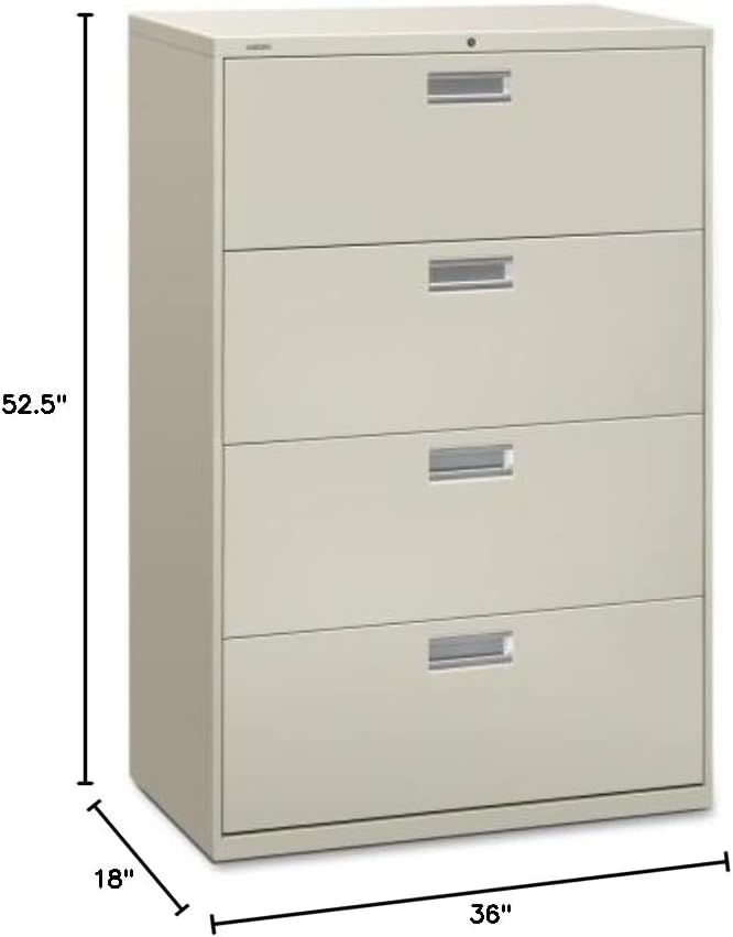 HON 600 Series Standard Lateral Files w/Locks-4 Drawer Lateral File W/Lock, 36"x19-1/4"x53-1/4", Putty