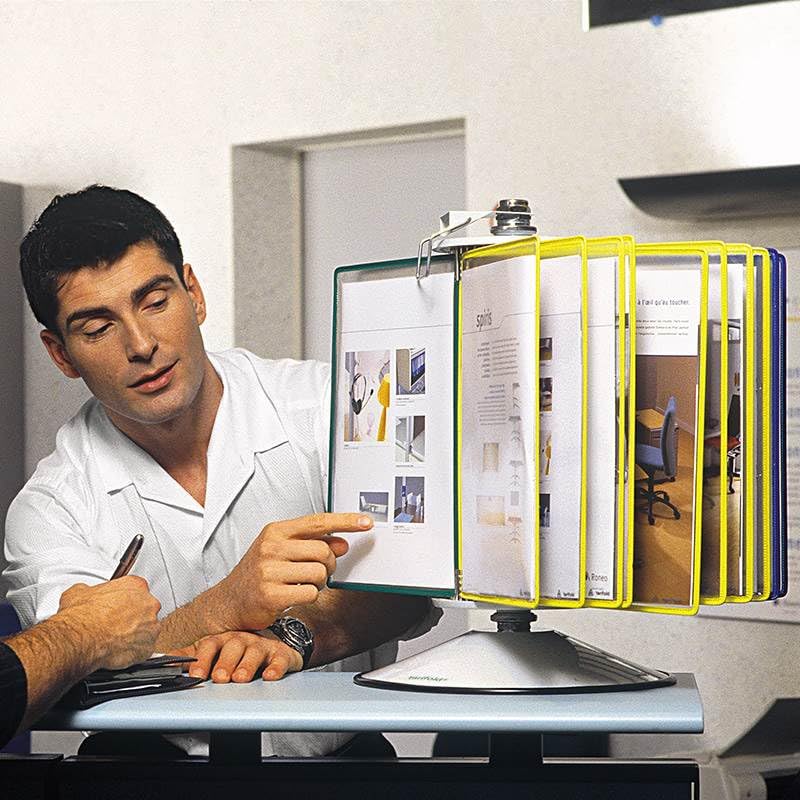 Tarifold Desktop Reference and Display System - 360° Rotation - Steel Rotary Base - 50 Assorted PVC Display Pockets - Letter Size - 100 Sheet Capacity (R295)