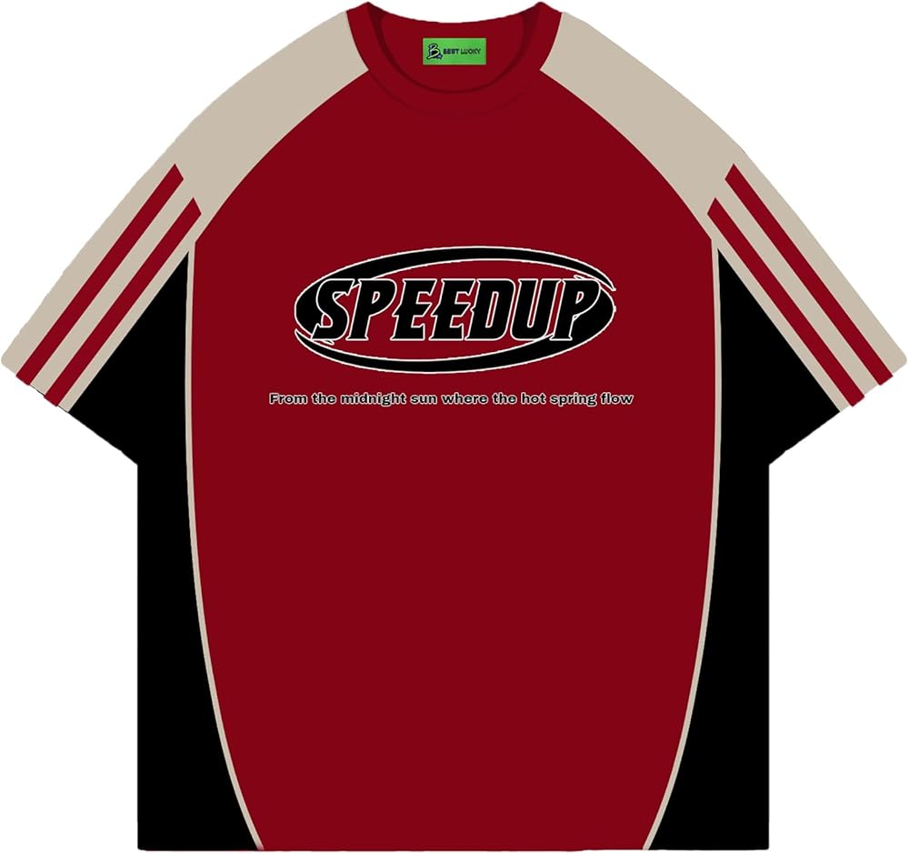 【RACING SHIRT】 This vintage tee combines racing elements with bold and fashionable design, contrasting colors and splicing design has a strong visual impact, very personalized, let you stand out from the crowd, show your charm and taste.