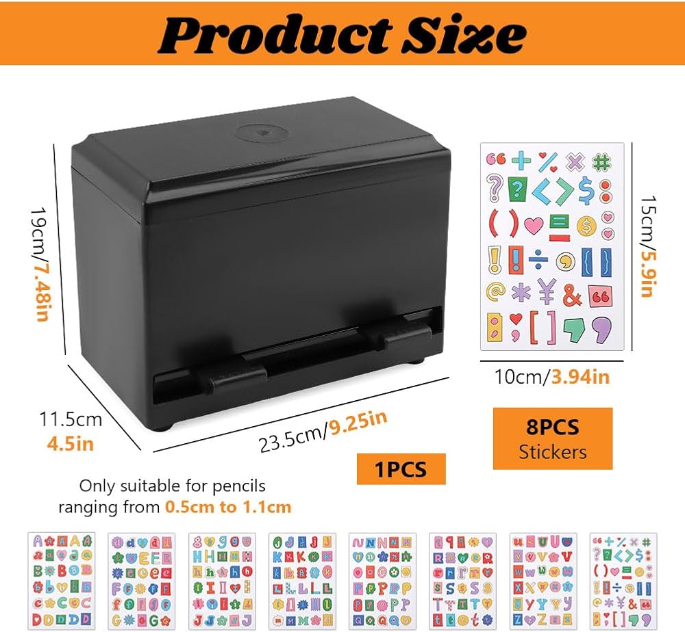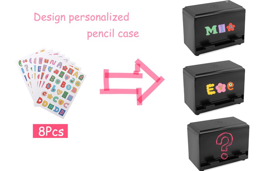 Our pencil box comes with 8 colorful alphabet stickers that allow you to design your storage container with names, initials, or fun messages. It's a great way to add a personal touch and make your pencil box stand out, especially in school or shared environments.