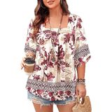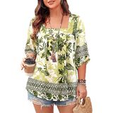 Elegant Square Neck & Exquisite Details - Bulotus plus size top features a flattering square neckline that highlights your collarbone and softens facial lines, exuding timeless elegance with every wear. Delicate chest pleats add a subtle bohemian touch, cleverly concealing the midsection for a relaxed, peasant-inspired silhouette that flatters all body shapes. The gently flowy hem further smooths the tummy area, elevating your look with effortless elegance and understated charm.