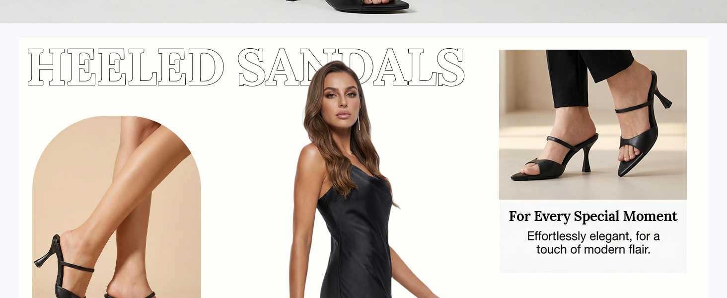 المزايا: صندل مفتوح بمقدمة مدببة وكعب ستيليتو، يوفر الارتفاع المثالي لمظهر براق