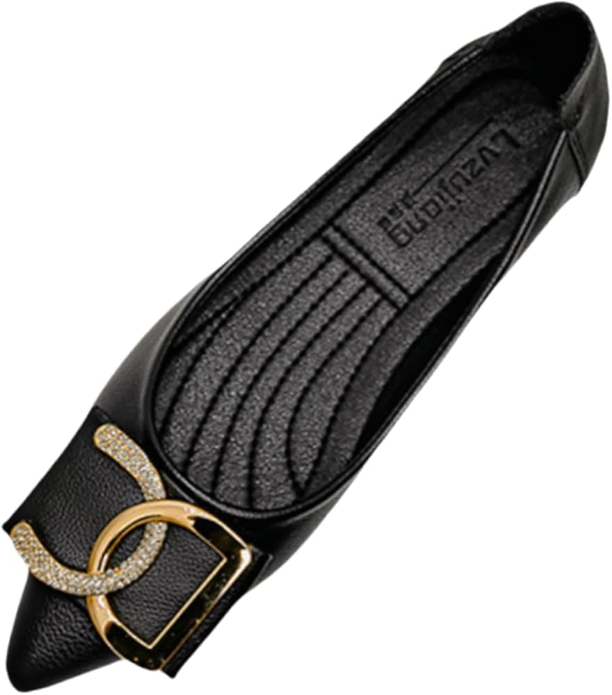 Pointed Toe Design for a Chic Look The pointed toe silhouette adds a touch of modern elegance to any outfit. It elongates the appearance of your feet, creating a slender and refined look. Whether you're pairing them with a formal dress for a party or a tailored suit for the office, these flats will elevate your style and make you stand out in a crowd.