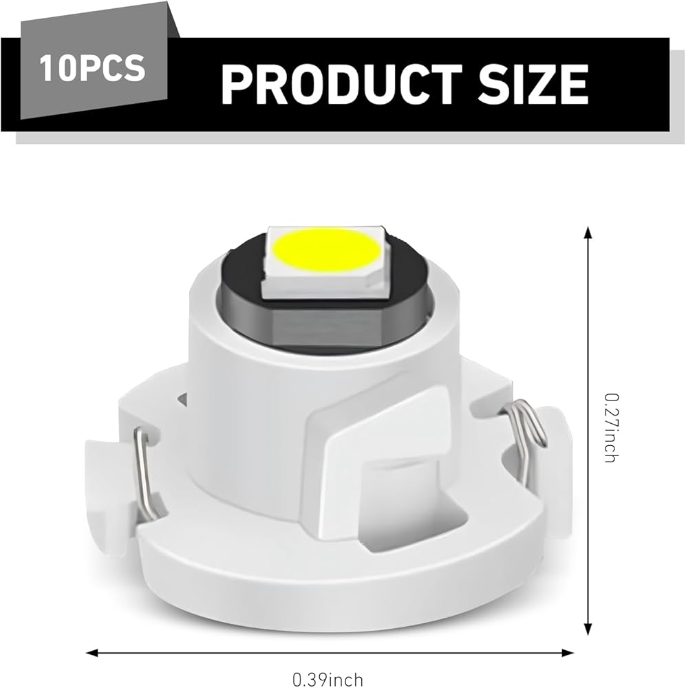 Complete Value Pack: The package includes 10 pieces of T4.2 wedge base instrument panel bulbs. With a compact overall size of 0.39" x 0.27" and a 0.39" (10mm) base diameter, this pack meets your long-term replacement needs for dashboard lighting in most cars and trucks.