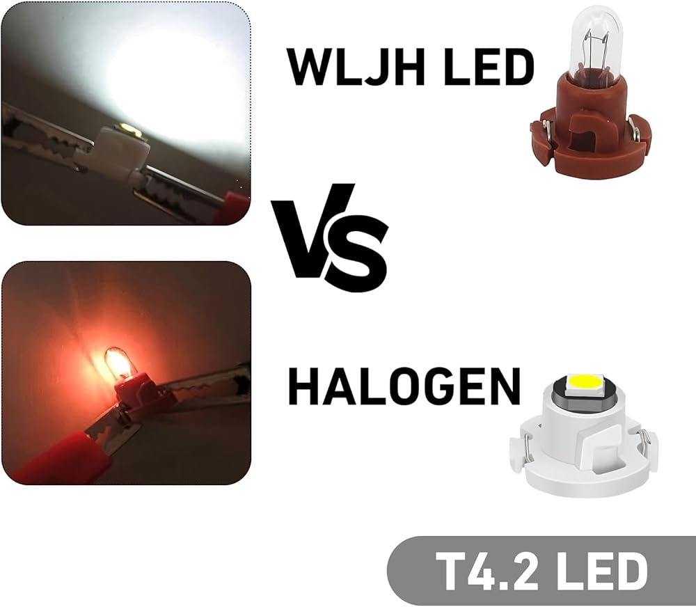 Plug-and-Play: Designed for quick and easy installation, this T4.2 size wedge bulb requires no wiring modifications. It directly replaces old incandescent T4.2 bulbs and is ideal for dashboard lights, HVAC control indicators, and radio panel illumination.