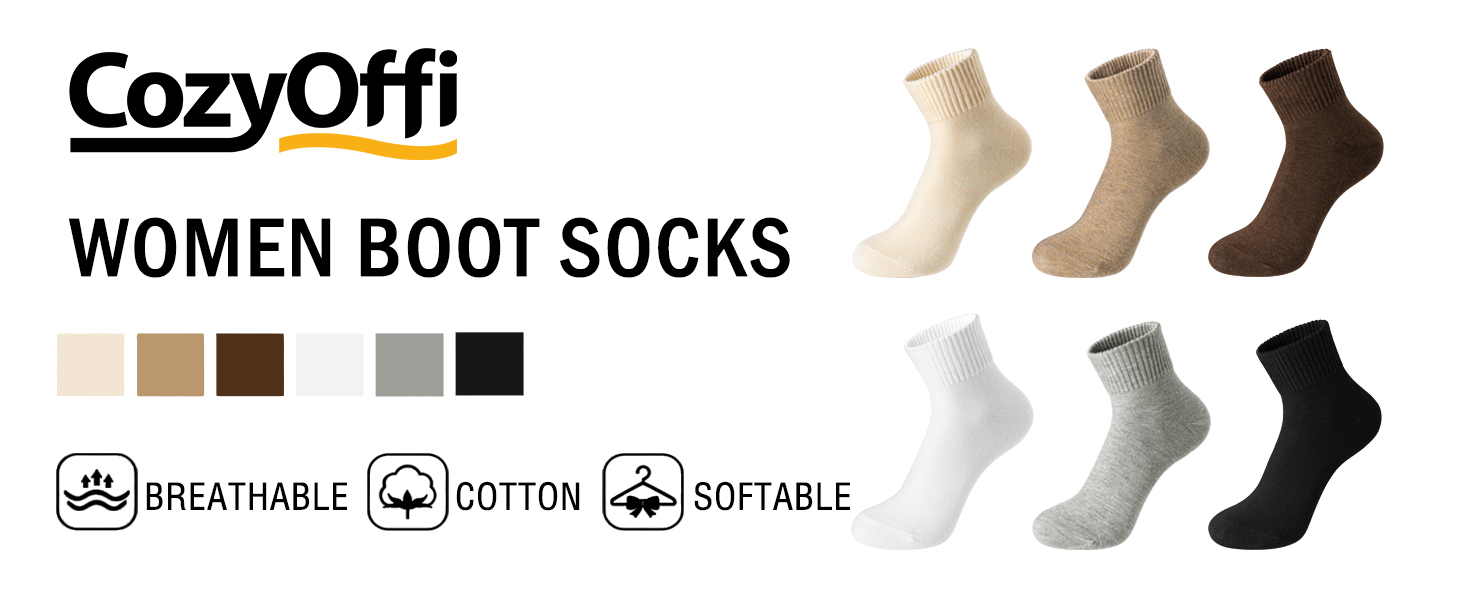 COTTON FABRIC:Women's boot socks are made of 70% cotton, 27% polyester and 3% spandex. Soft material enhances comfort. Medium thicknessbetween thin and thick, keeping feet dry. Suitable for all seasons.