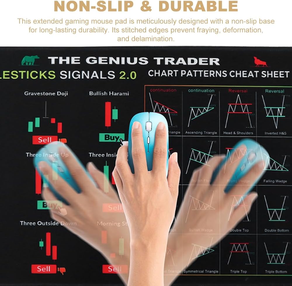 Stock Market Mouse Pad, Large Computer Mouse Mat Invest Day Trader Trading Chart Patterns 31.2x11.7inch, Non-Slip Desk Mat