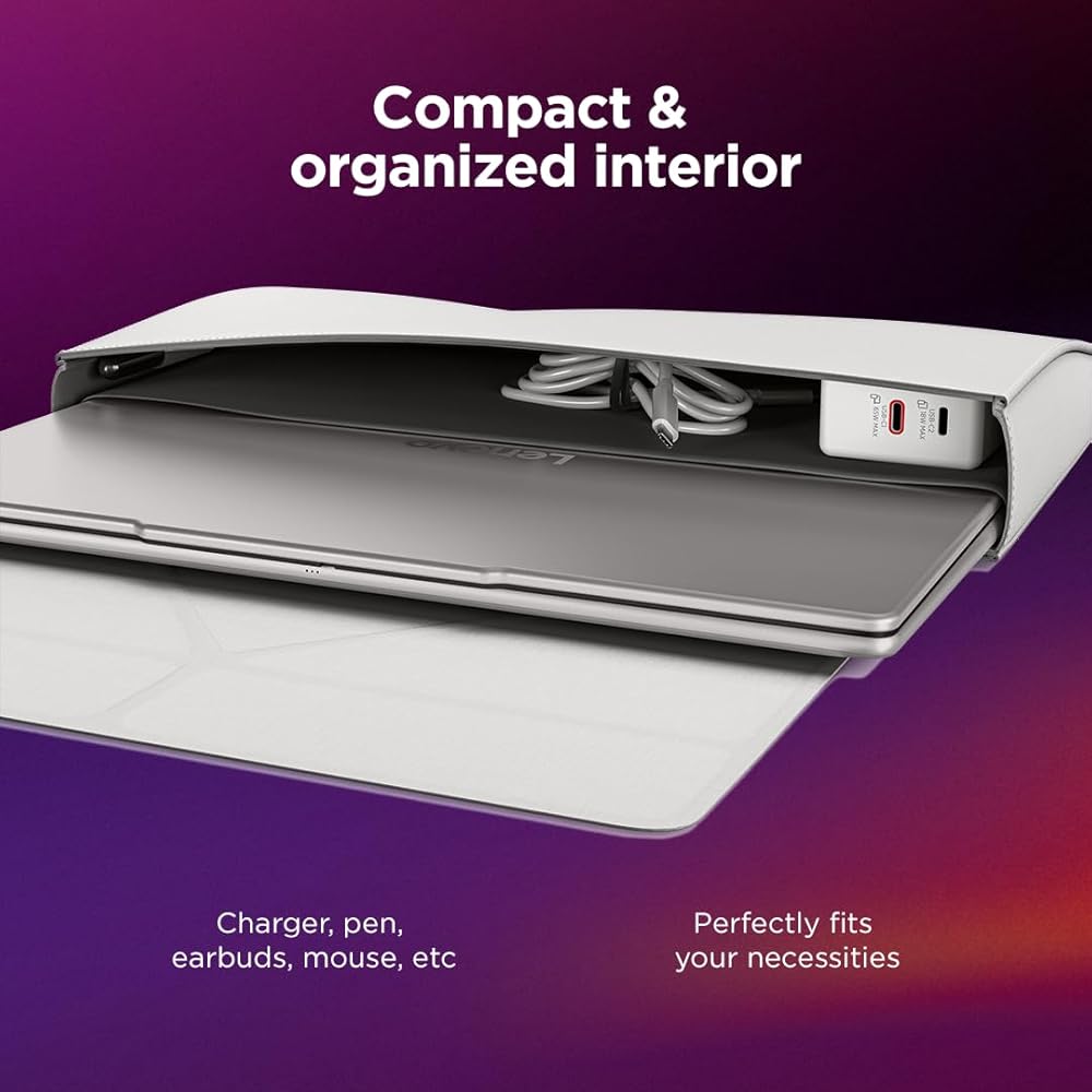 Sleek, modern, and thoughtfully designed, the Lenovo Yoga Tote Sleeve brings your entire ecosystem together in one solution. Accessories unite. Workflow simplifies. Life feels lighter. It's a refined way to carry what matters most. More than a sleeve, it unfolds into a versatile stand that adapts seamlessly to the way you work, create, and relax.