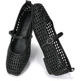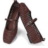 Slip into these classic Mary Jane ballet flats for a naturally comfortable wearing experience. The Classic double-strap design features an adjustable buckle, crafted from knitted fabric for both style and breathability. The knitted upper keeps feet dry and comfortable all day long, while the ergonomic insole provides exceptional support for extended periods of walking or standing. The slip-resistant sole ensures steady footing on various surfaces, making them equally suited for commuting, leisure outings, or special occasions. The square toe adds a contemporary touch while offering ample room for your toes. This versatile flat effortlessly pairs with dresses, skirts, trousers, or jeans, making it an essential wardrobe staple. Robust construction and premium materials guarantee lasting durability, preserving both shape and comfort over time.