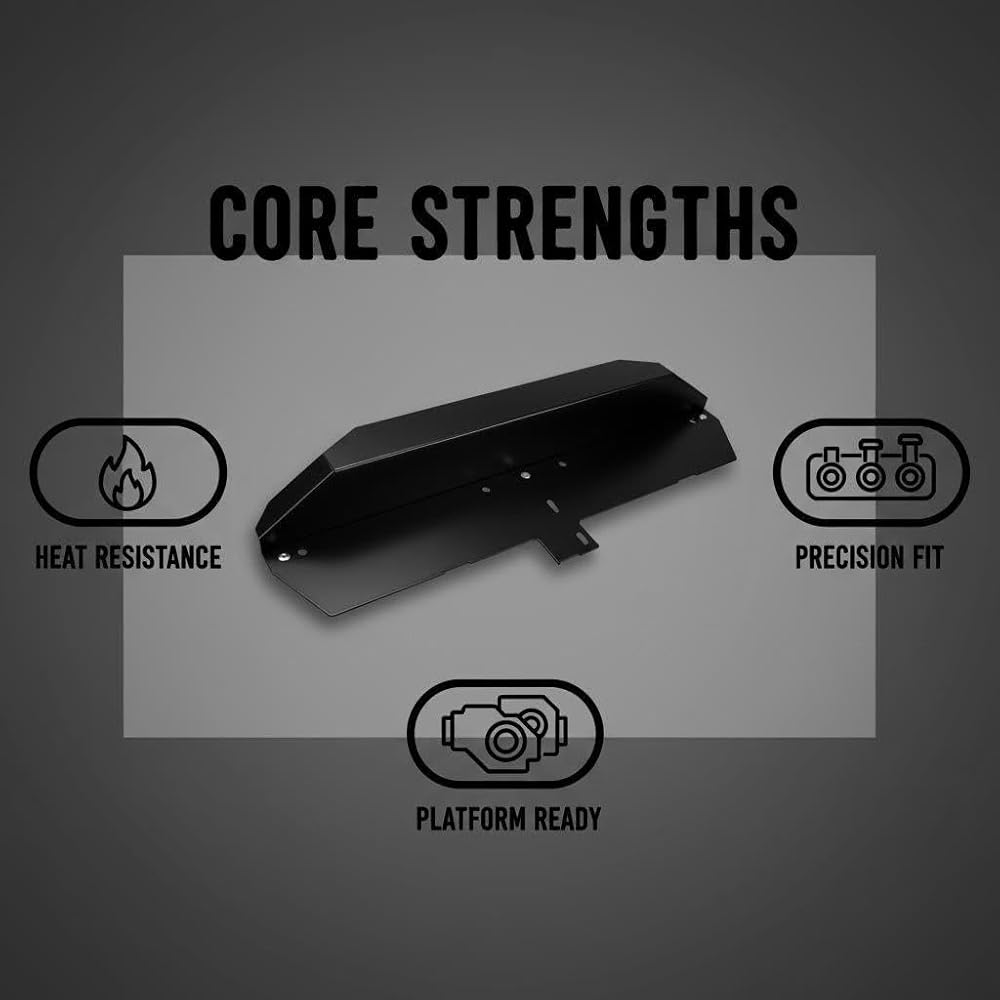 - Our high-quality black heatshield effectively manages extreme temperatures.