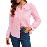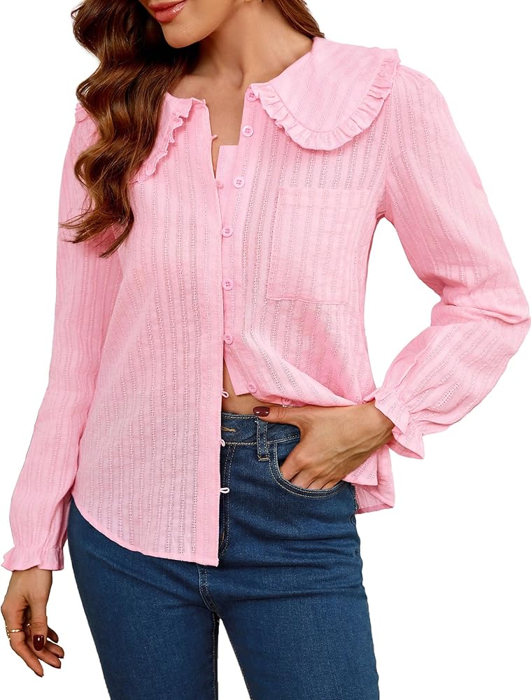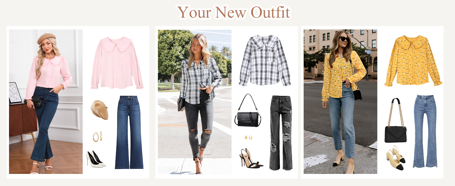 Trendy & Polished Design: Featuring delicate puff sleeves with frilled details and a sweet vintage inspired peter pan collar. This trendy top adds a cute, kawaii touch while maintaining a classy, elegant look suitable for business and dressy occasions.